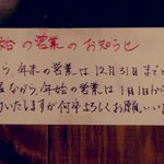 年末年始の営業のお知らせです。 誠に勝手ながら、年末の営業は12/31までとなります。また、大変恐縮ながら、年始の営業は1/1からとなります。ご迷惑をおかけいたしますが、何卒宜しくお願い申し上げます。 https://twitter.com/mafumicoffee/status/1339456670343184384/photo/1