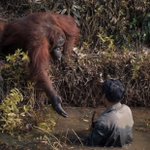 沼で蛇の生息調査をしていた大学教授を見て、泥沼にはまって抜け出せないんだろうと勘違いして、助けてあげようと手を差し伸べたオランウータン… https://twitter.com/fuhentetsu/status/1537266407460679681/photo/1
