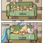 ソファーに集まるイーブイズ ビフォー/アフター https://twitter.com/nekonon_syano/status/1573332439430483969/photo/1