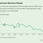 ロシアを好意的に見ているアメリカ人の割合はソ連崩壊後最低水準の9%へ。去年の15%よりさらに6%減。 支持政党別のグラフでも差が全くない(共和党•民主党共に、親露派は6%のみ)。 陰謀論者に不都合な真実。 https://twitter.com/nippon_ukuraina/status/1635546876304039936/photo/1